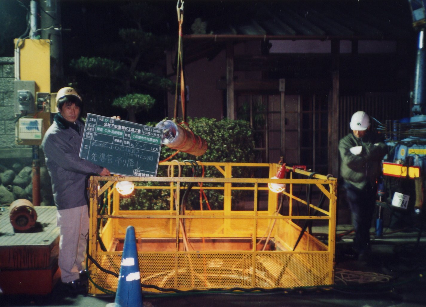 エンビライナー工法『SH−253型』によるエンビ管φ200mmの急勾配施工を紹介致します。 路線延長は約220m×4スパンで、60.3m(24‰)、48.8m(48‰)、47.8m(45‰)、60.8m(23‰)と急勾配施工でした。 土質は、N値40〜50以上の砂岩、土被り約3m、水位はGL−2m、水頭差が約1m、オーガ一工程式で施工致しました。 発進はライナープレートφ1,500mm( 推進部拡幅φ1,800mmと特殊)、到達はライナープレートφ1,500mm、1ケ所のみ2号人孔に到達しました。 推進当初は、@硬質土のため推進ができない、A硬質土施工のため注水した掘削水が排土とともに発進立坑に戻ってくるが、下りの急勾配のため先導管内に回り入込むトラブルが発生しましたが、硬質土についてはヘッドの爪の取付けを変更、また先導管内への戻り水の進入についてはシールを工夫して対応した。当初はトラブルがあり苦慮しましたが、貴重なノウハウを体得できた現場でした。 (工事概要) 工事場所:神奈川県 施工時期:平成18年1月〜3月 施工 :株式会社 ハシックス(夜間工事) 土質 :砂岩、N値40〜50以上 土被り :約3m 水位 :GL−約2m 勾配 :約23,24,45,48パーミル 管 径 :φ200mm ( 下り勾配の場合管径はφ250mm) 管種 :VP管 工法 :オーガ方式一工程式 推進機種:SH−253型 路線延長:約220m×4スパン、最大60.8m 発進立坑:ライナープレート φ1,500mm 到達立坑:ライナープレート φ1,500mm(1ケ所のみ2号人孔到達) * 記載内容が不十分で誤解を与えるとのご指摘をいただきました。赤字部のと おり2009.02.10に追加修正いたしました。 |